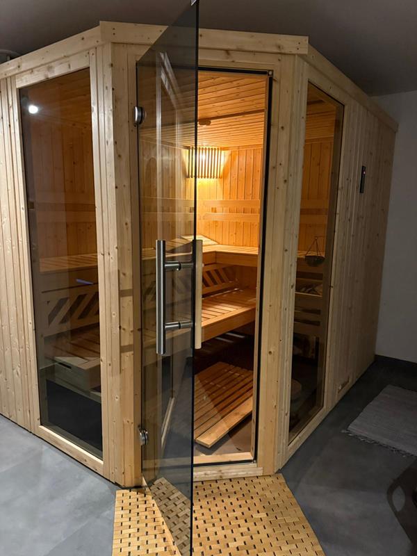 ✔ 🧖♀️ duża sauna z prysznicem i strefą relaksu
