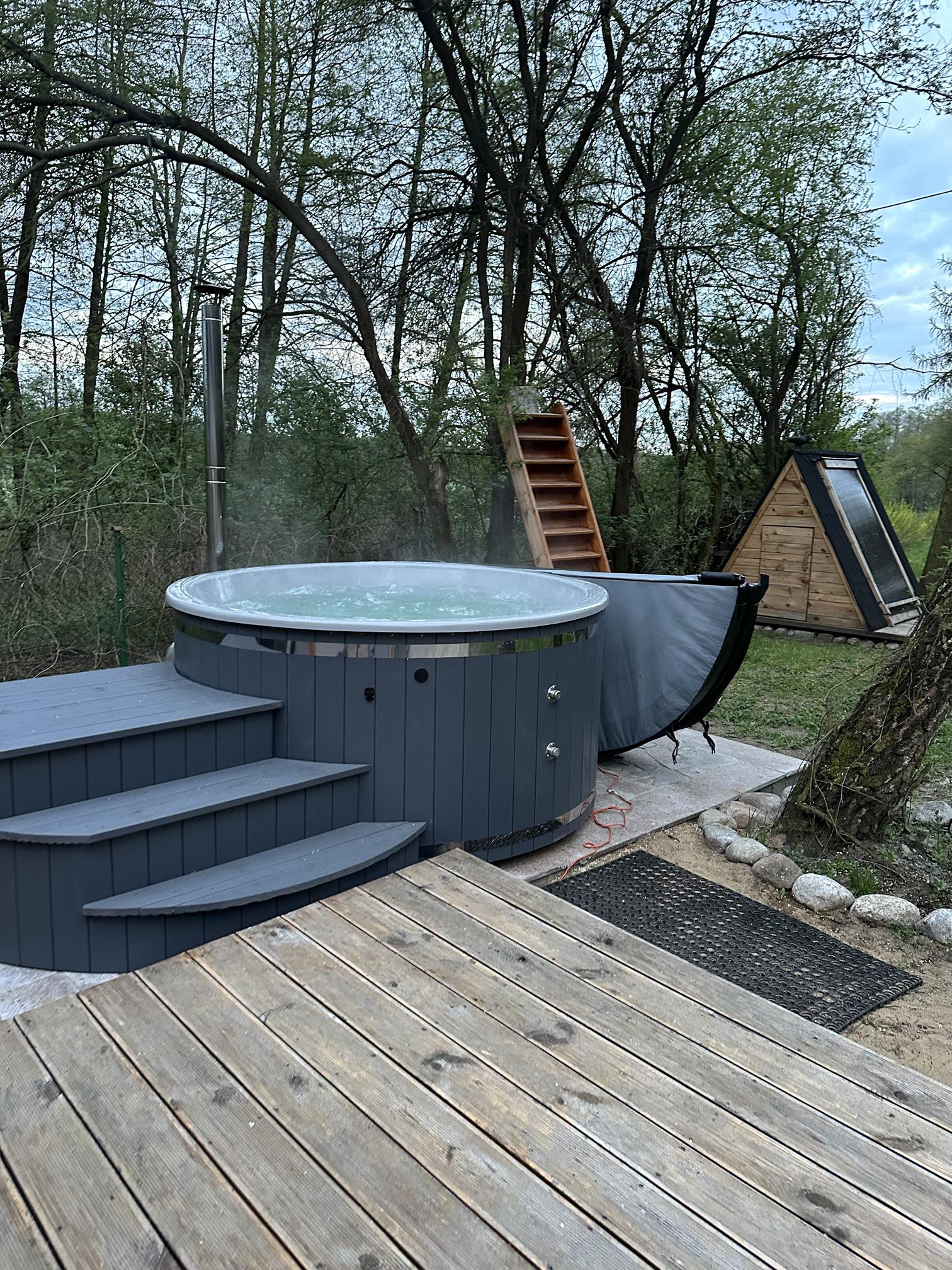 Jacuzzi (opcja) – 100 zł za wodę, dezynfekcję i drewno do początkowego nagrzania i 2 zł/kWh za podtrzymanie temperatury;