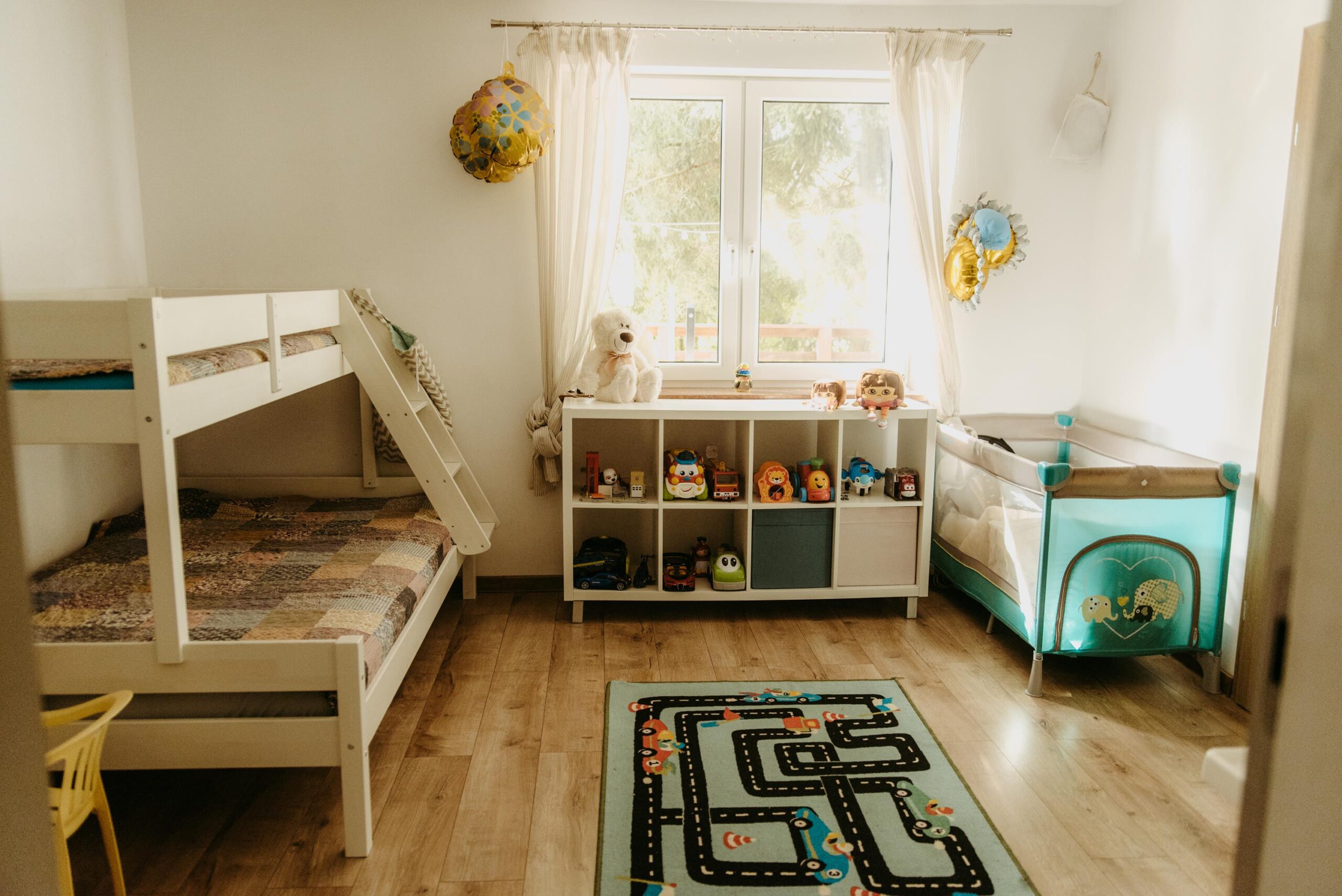 • pokój dziecięcy (łóżko piętrowe 120/90×200, zabawki, gry, krzesełka do karmienia, łóżeczko)