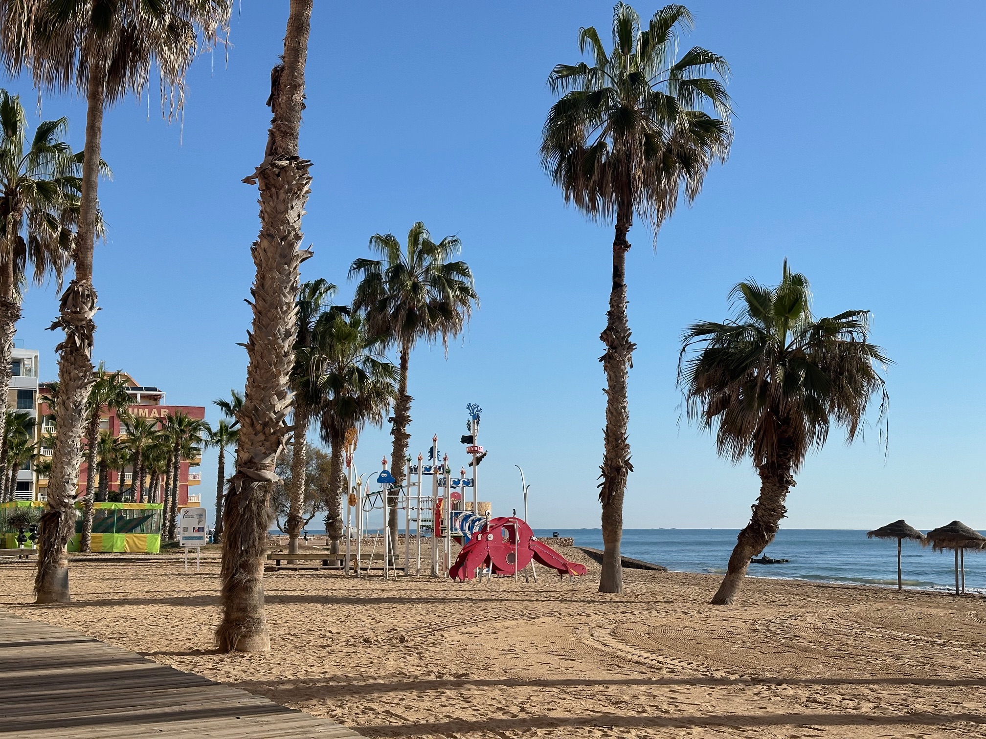 Do szerokiej i piaszczystej plaży 5 min spacerem, najbliższe sklepy 2 min spacerem, restauracje 2 min spacerem, duża baza gastronomiczna oraz sklepy czynne do nocy. W miejscowości nie ma strefy płatnego parkowania, nie ma dyskotek(więc można odpoczywać) natomiast są bary z muzyką na żywo, karaoke, długi deptak wzdłuż plaży z barami.
