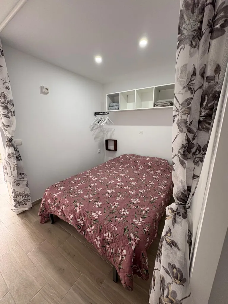 Jest to klimatyzowany i nowoczesny, wyposażony jest w sypialnię z podwójnym łóżkiem, salon z rozkładaną sofą i łazienkę z prysznicem.