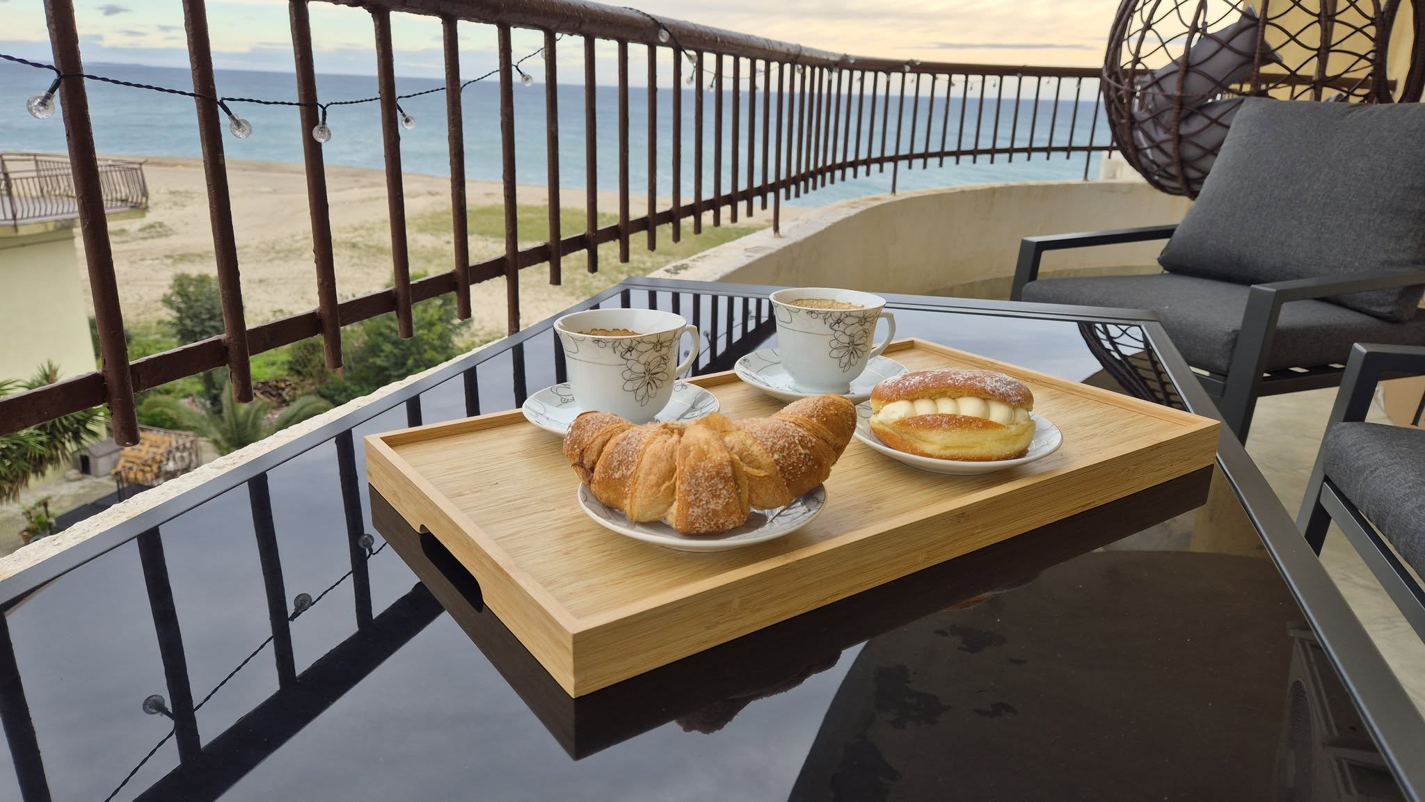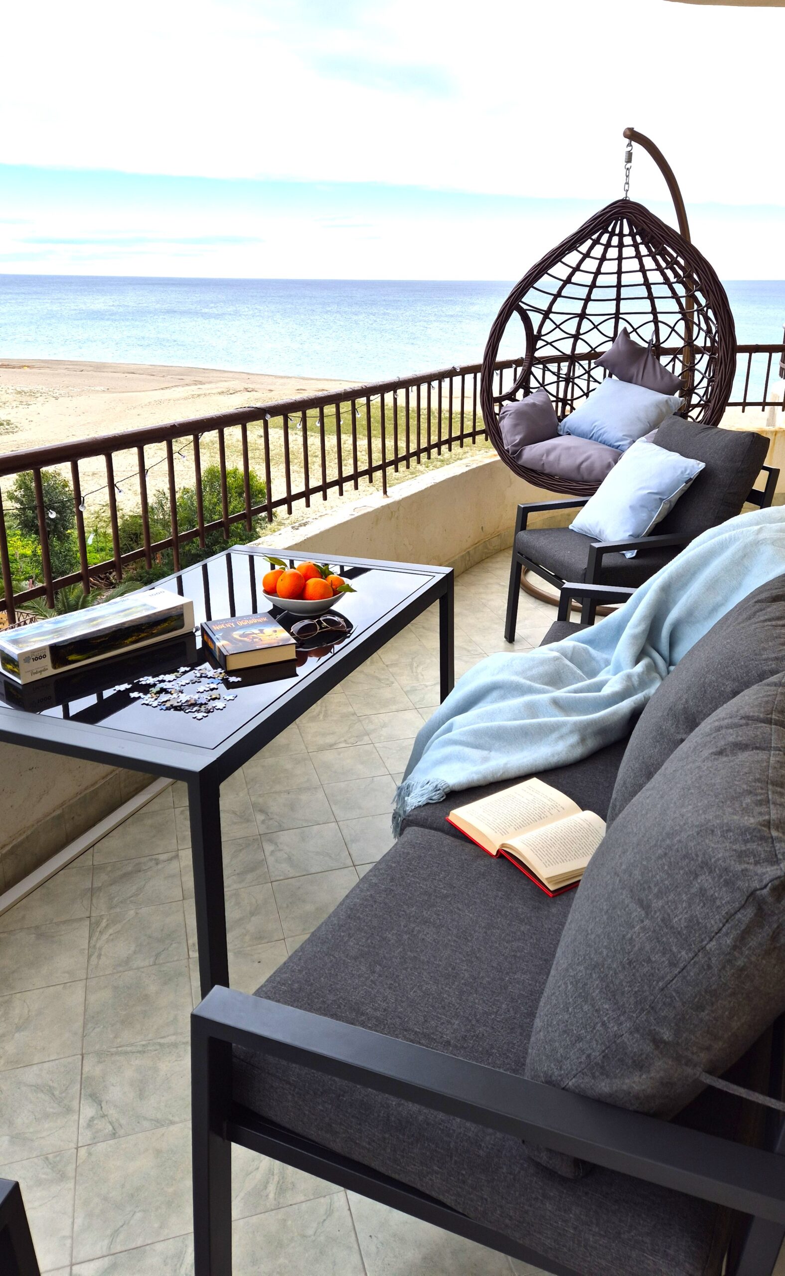Duży balkon z widokiem na morze – idealny na poranną kawę i wieczorny relaks.