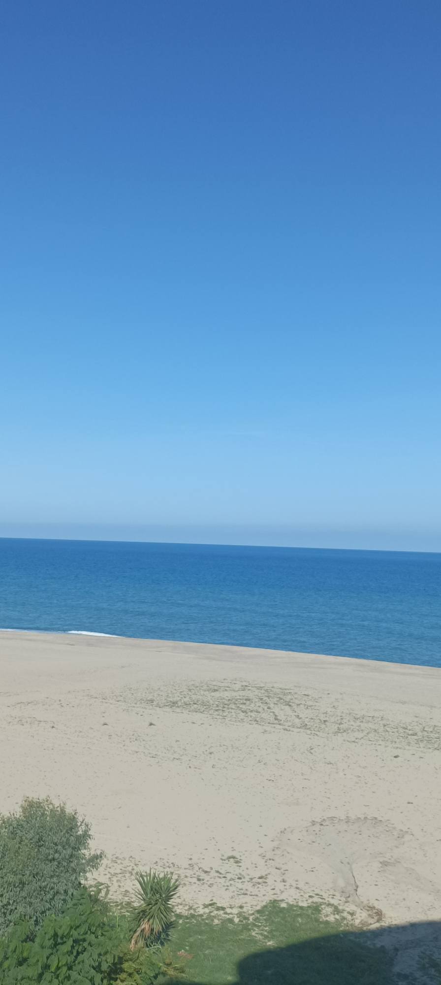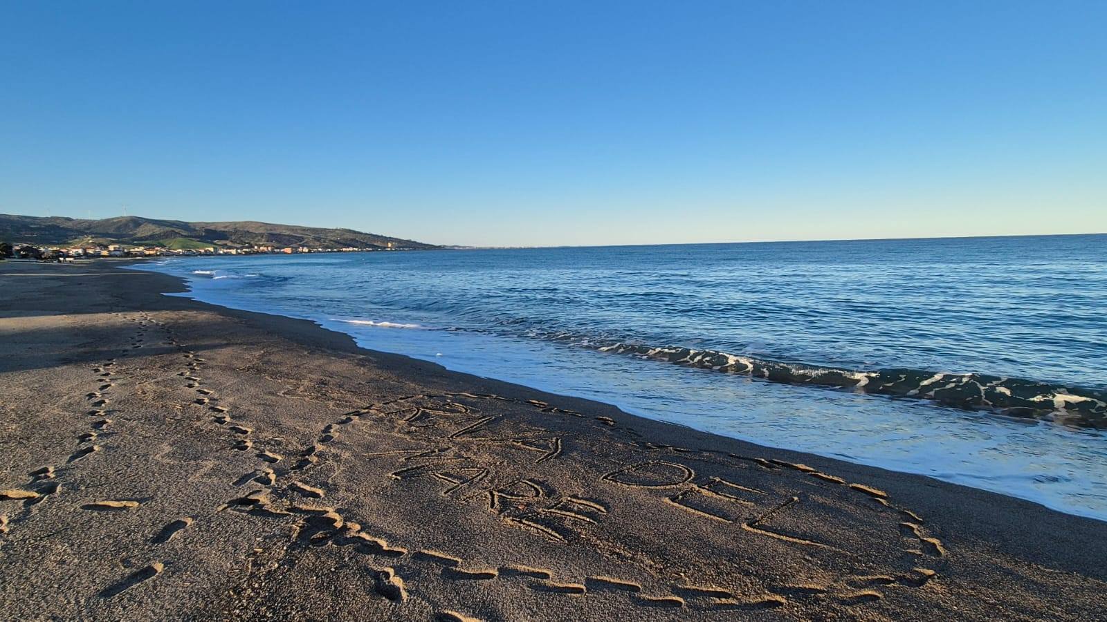 Pierwsza linia brzegowa, przy szerokiej piaszczystej plaży z widokiem na Morze Jońskie we włoskiej Kalabrii.